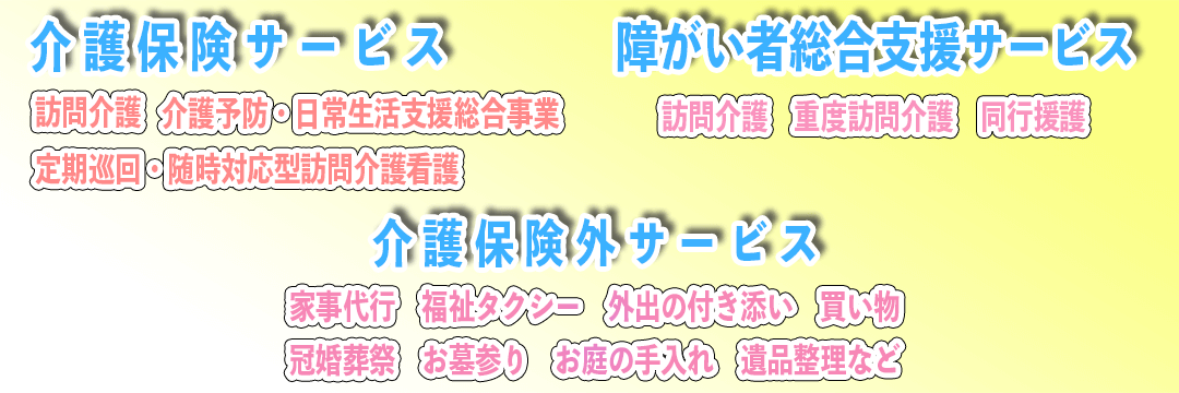介護保険が適用される生活援助・身体介護のほか、介護保険外のサービスとして